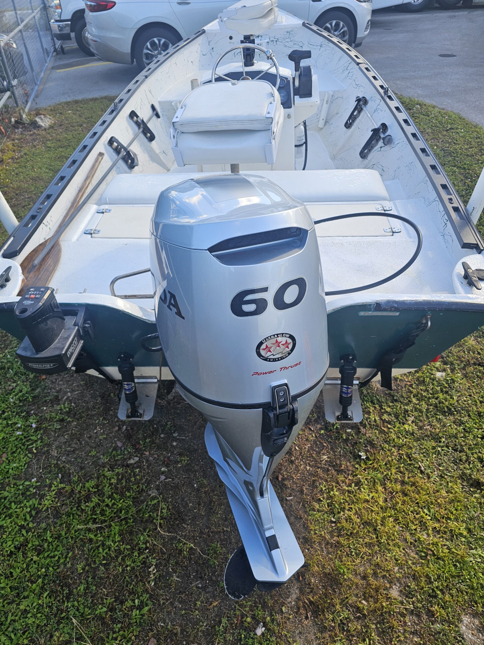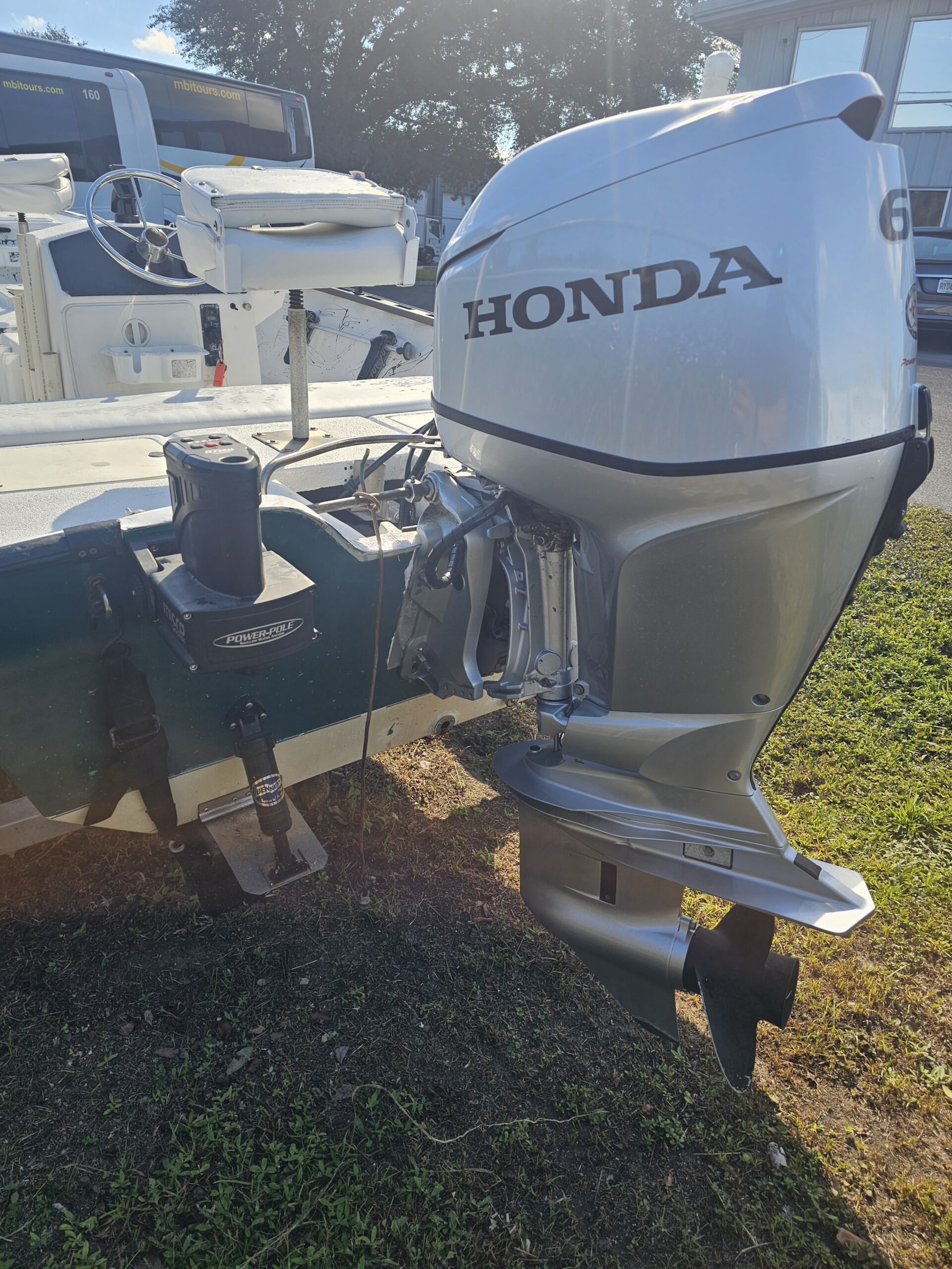 Powered by a 2013 Honda 60hp 4-Stroke and riding on a 2020 Magic Tilt single-axle trailer, this Fish Hawk is ready for the water!