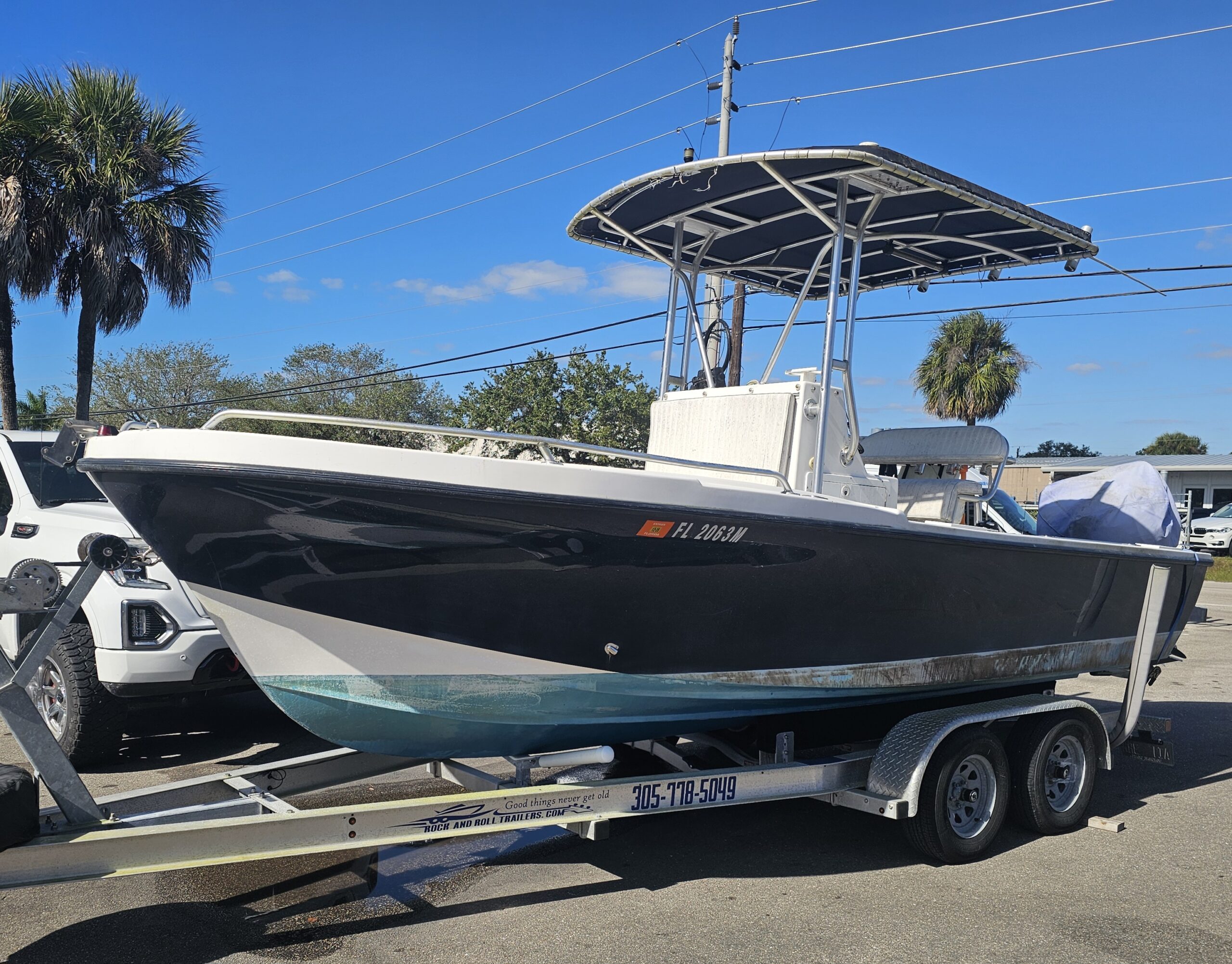 Great setup for fishing, diving, or cruising. Turn-key boat with electronics and trailer included.